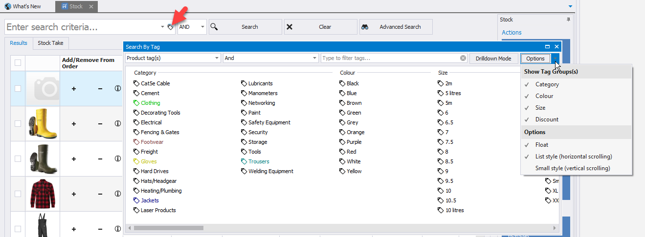 - Tag groups can be omitted in the new Options menu as well as switched between two styles. Note drilldown mode (for tag disappearing only when exists on something) and the tag search filter for also narrowing down options/results.